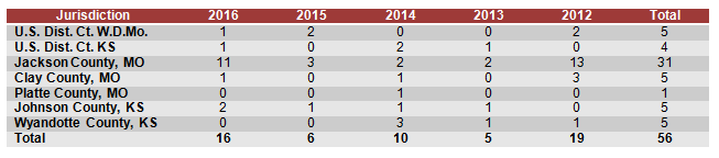 Source: Greater Kansas City Jury Verdict Service Year-End Reports 2012-2016